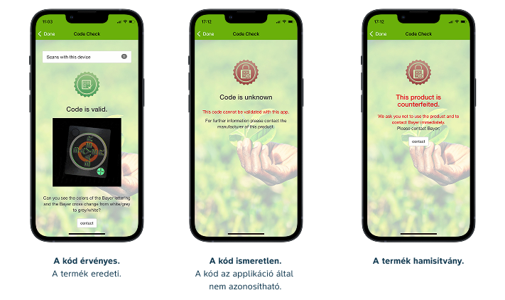 A Bayer Safety Seal a vetőmagzsák alján elhelyezett zárjegy, melynek segítségével könnyen ellenőrizheti a termék eredetiségét. A zárjegy egy hologrammos Bayer logót és egy egyedi QR kódot tartalmaz. Ezt a kódot a Bayer CropScience Seal Scan applikáció segítségével olvashatja be. Beolvasás után azonnali visszajelzést kap a vetőmag eredetiségéről.